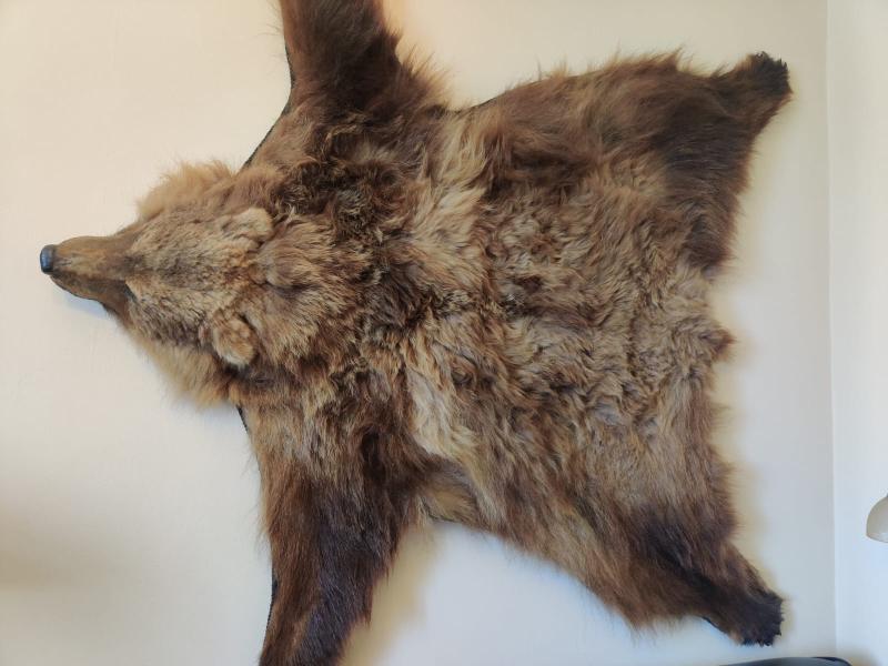 Натуральная выделанная шкура бурого осеннего медведя (Камчатка). Без вытертостей и запаха, свежая. Изготовлена в известной таксидермической мастерской. Размер 190х170 см. Год провисела на стене.